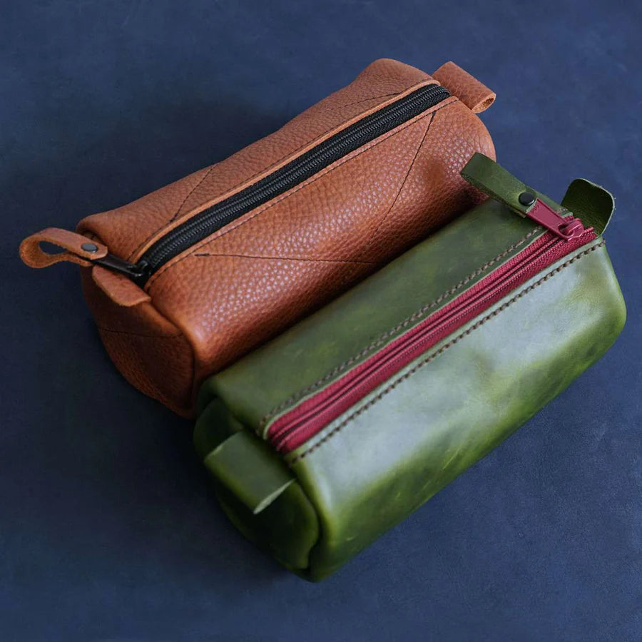 Material Required: (2 sqft) of 2-3 oz. up to 3-4 oz. leather, (1) 8 Zipper (if making your own zipper, you'll need 9 of regular nylon zipper tape or #5 zipper chain and a corresponding pull), and (1) Small Rivet - Rivet Setter Optional. If you are hand sewing, you will need the following: stitching punch (our 3-piece stitching hole punch set #378-210 fits the holes in this template perfectly!), mallet, poly board, thread, and needles.