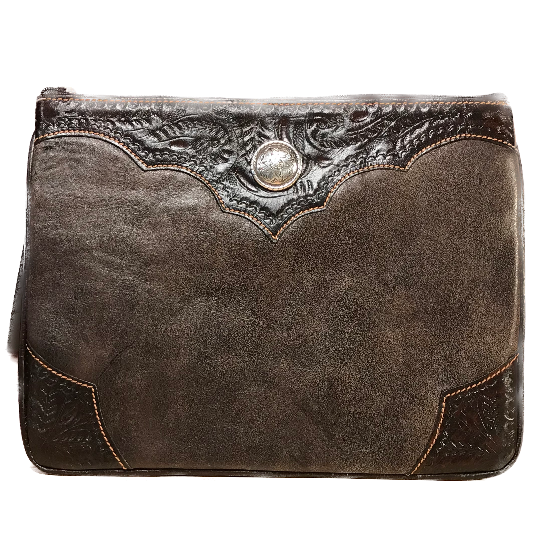 Dark Chocolate Leather Tablet Computer Case with Silver Concho